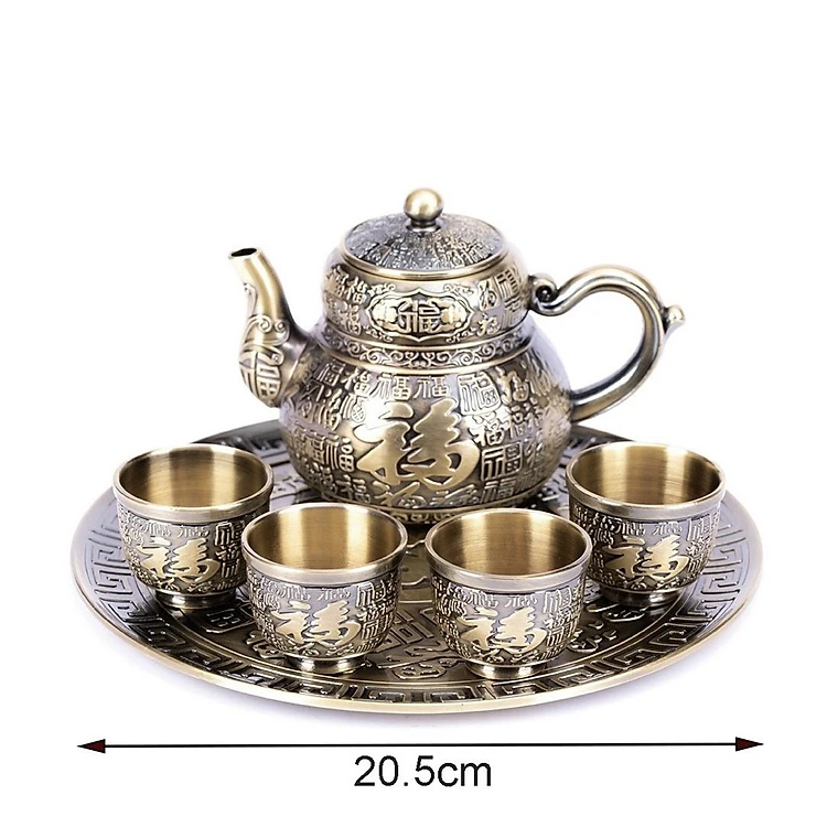 BỘ ẤM CHÉN TRÀ BẰNG ĐỒNG GIẢ CỔ HỌA TIẾT RỒNG - VD95