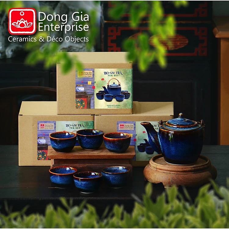 Bộ ấm dáng mới Đông Gia -màu men hỏa biến tự nhiên xanh sóng biển 8094