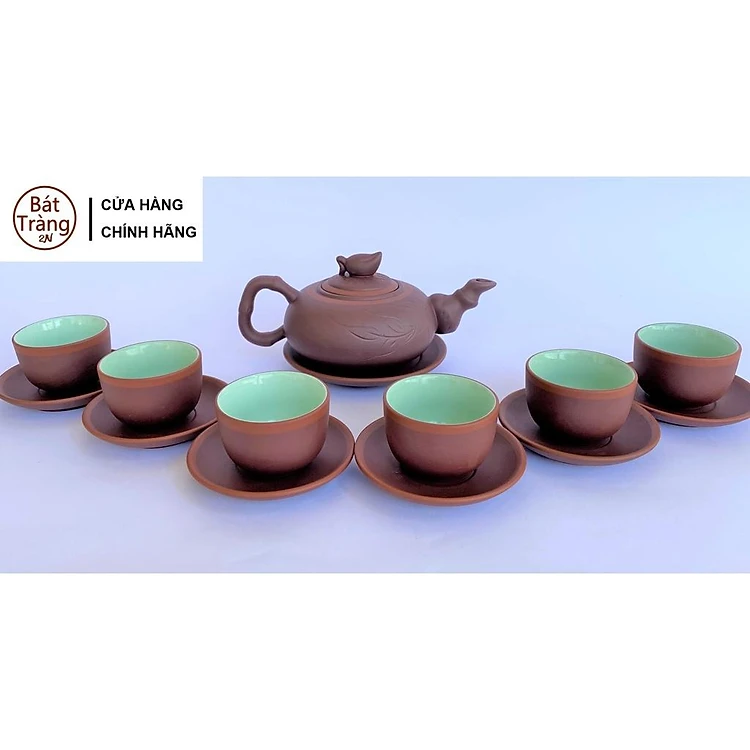 Bộ Ấm Trà Tử Sa Bát Tràng Trúc Đào Nâu S1 Màu nâu/lòng tách trà xanh ngọc Đất Tử Sa / Xưởng Gốm, mua làm quà tặng
