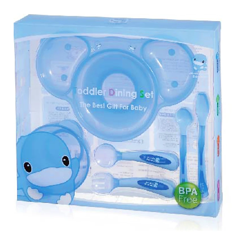 Bộ sản phẩm bao gồm 6 món: khay ăn 3 ngăn và chén ăn có đế nhựa chống trượt, 3 muống và 1 nĩa xinh xắn cho bé. Chén có đế cao su chống trượt giúp bé sản phẩm không bị trợt đổ khi bé tập ăn. Muỗng có 3 kích thước khác nhau giúp mẹ dễ dàng chọn lựa kích thước phù hợp với khả năng của bé. Lòng muỗng sâu giúp chống tràn thức ăn khi múc. Khay ăn 3 ngăn riêng biệt có lòng sâu giúp mẹ phân loại các thức ăn cho bé vừa giúp bé nhận biết các loại thực phẩm vừa tạo nên tính khoa học, logic từ nhỏ cho bé.