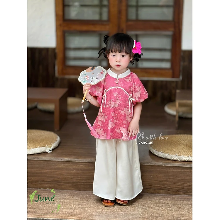 Bộ áo bà ba gấm cho bé gái phối quần suông diện tết năm mới 10-40kg mềm mát