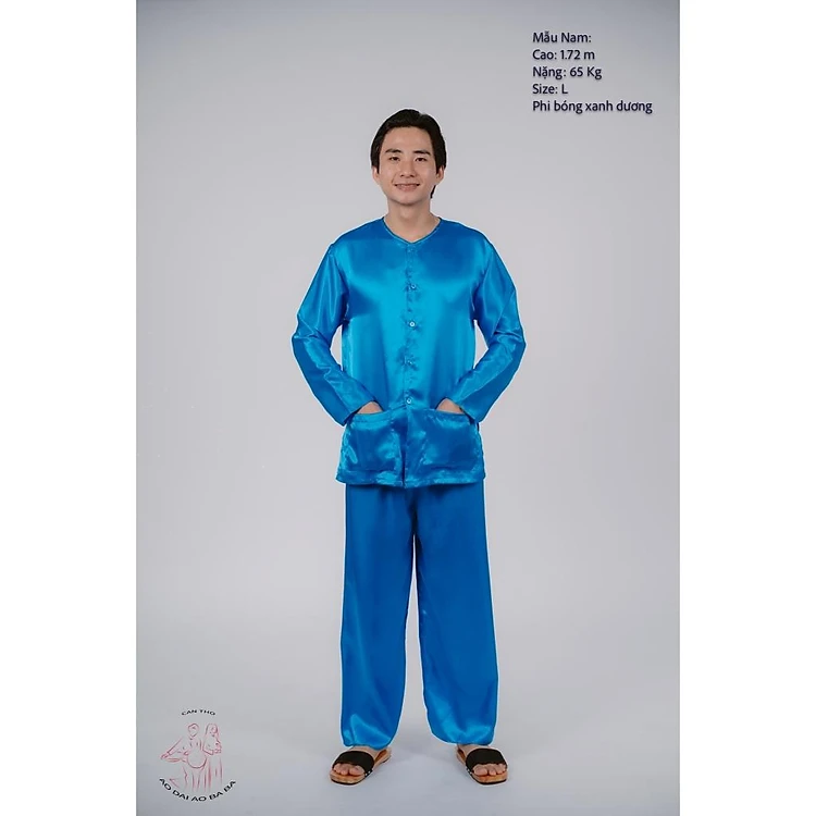 Bộ áo bà ba nam phi bóng xanh dương - Có bộ bà ba Bigsize- may sỉ bà ba toàn quốc - May bộ bà ba theo yêu cầu