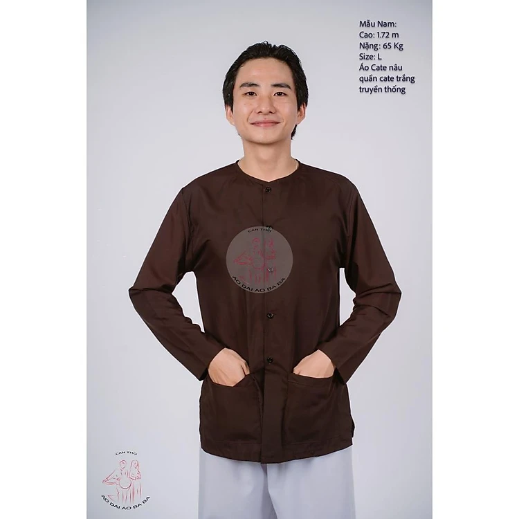 Bộ áo bà ba nam phối áo cate nâu+ Quần cate trắng - Có bộ bà ba Bigsize