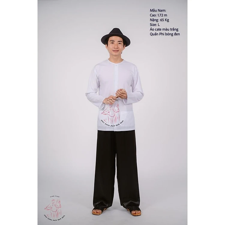 Bộ áo bà ba nam phối áo cate trắng + Quần cate đen - Có bộ bà ba Bigsize