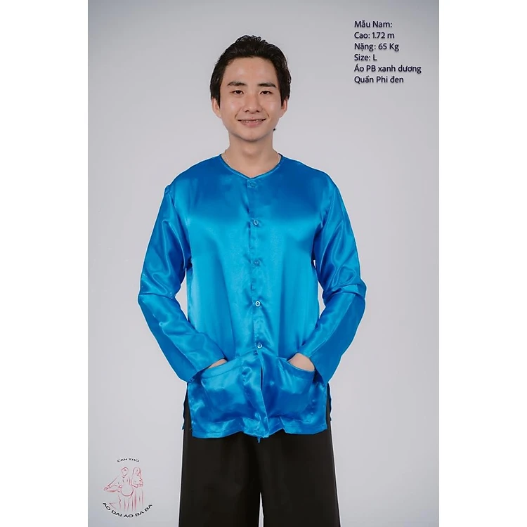 Bộ áo bà ba nam phối áo phi xanh dương + Quần phi đen - Có bộ bà ba Bigsize