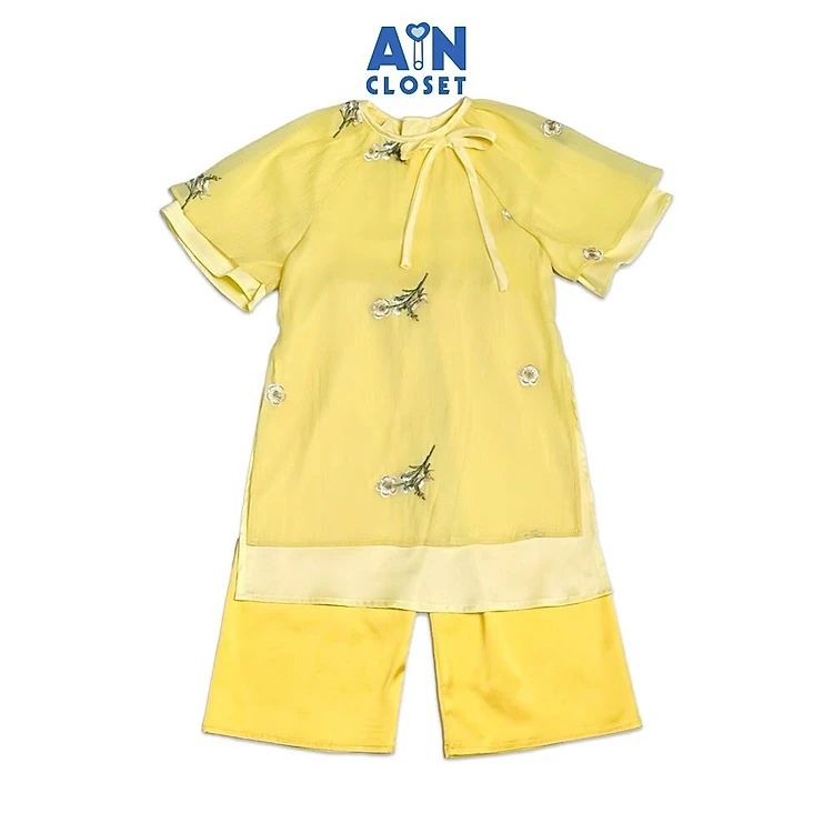 Bộ Áo Dài bé gái họa tiết Hoa Mai Cúc Vàng Lụa Xốp - AICDBGJEGHFD - AIN Closet