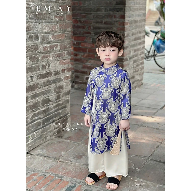 Bộ áo dài cho bé trai bé gái diện đôi mẫu Phú quý An khang đón xuân năm mới từ 10-40kg vải gấm cực mềm