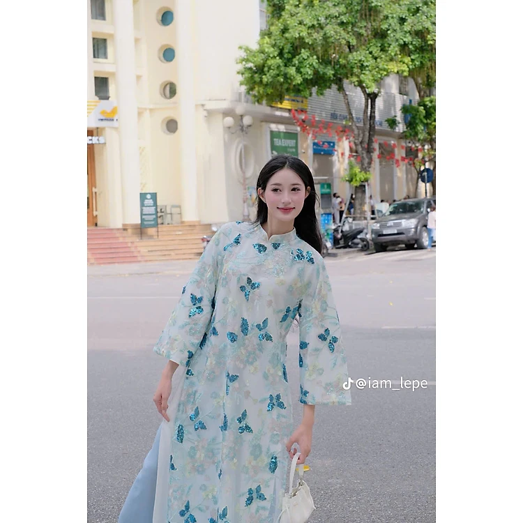 BỘ ÁO DÀI NỮ CÁCH TÂN KIM SA HỒ ĐIỆP – BƯỚM HỒNG & BƯỚM XANH