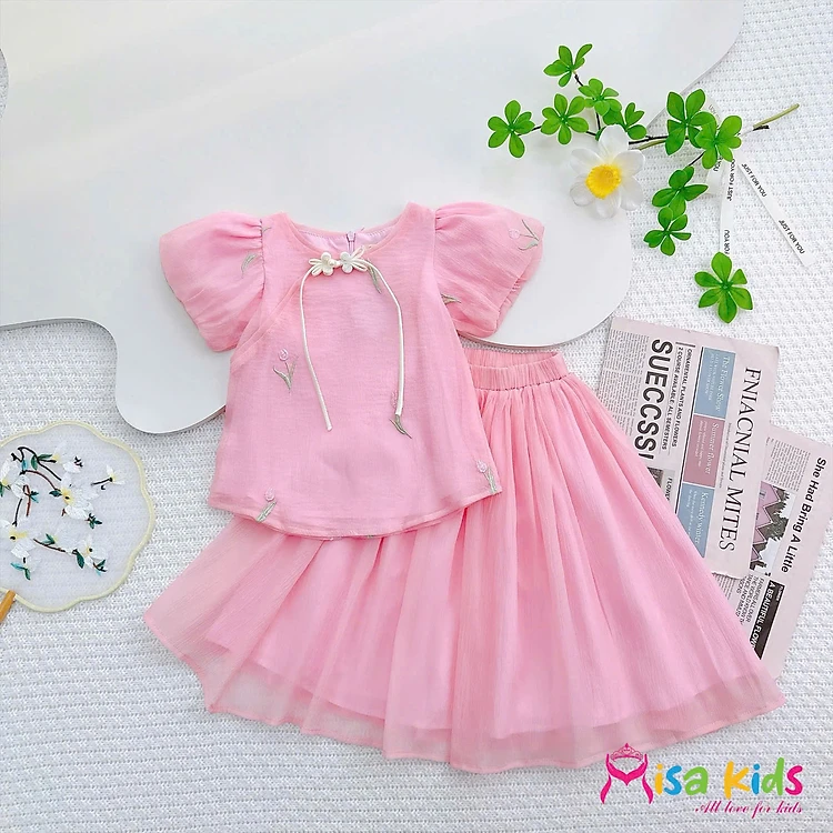 Bộ áo kiểu trung hoa phối chân váy cho bé gái xinh xắn diện lễ tết năm mới từ 12-40kg hàng thiết kế cao cấp