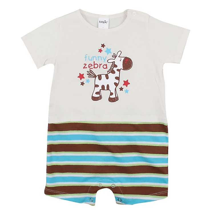 Bộ Áo Liền Quần Hình Ngựa Vằn Tollyjoy 6943 có thiết kế áo liền quần vô cùng xinh xắn, đáng yêu. Kiểu áo cổ tròn, tay ngắn với quần ngắn. Đặc biệt, họa tiết sọc vằn xanh nâu cùng hình ảnh ngựa vằn tinh nghịch, rất phù hợp với các bé trai.