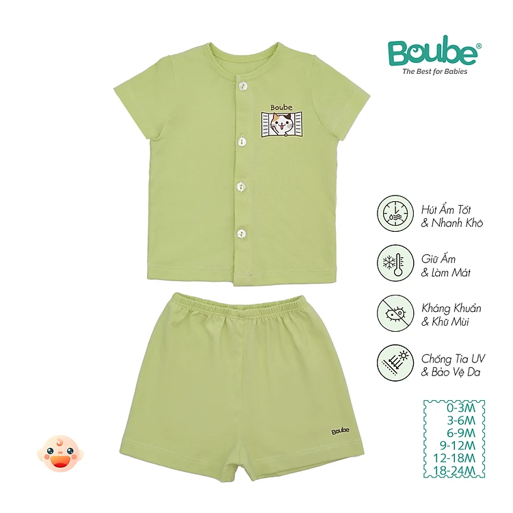 Bộ áo quần cộc tay cài thẳng nhiều màu sắc cho bé sơ sinh và trẻ nhỏ Boube, vải Cotton organic thoáng mát - Size 0-24M