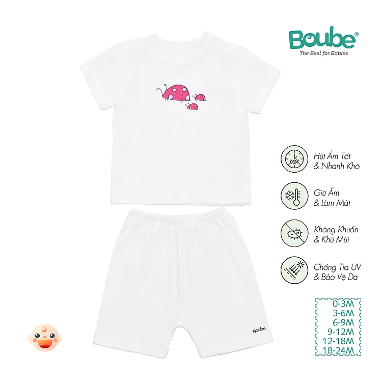 Bộ áo quần cộc tay cúc bấm vai màu trắng cho bé sơ sinh và trẻ nhỏ Boube, vải Cotton organic thoáng mát - Size 0-24M