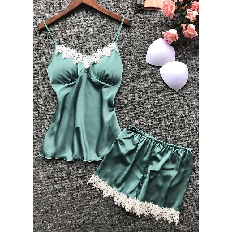 Bộ áo quần Ngủ Đùi nữ Phi Lụa Ren Ngực 926