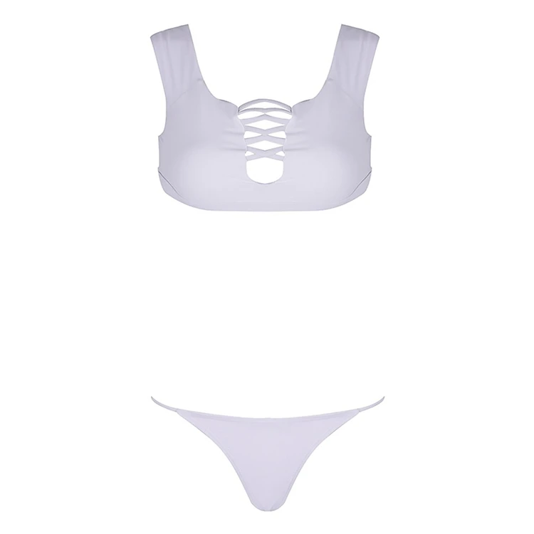 Bộ Áo Tắm Hở Vai Đan Dây Màu Trắng Mahinahina