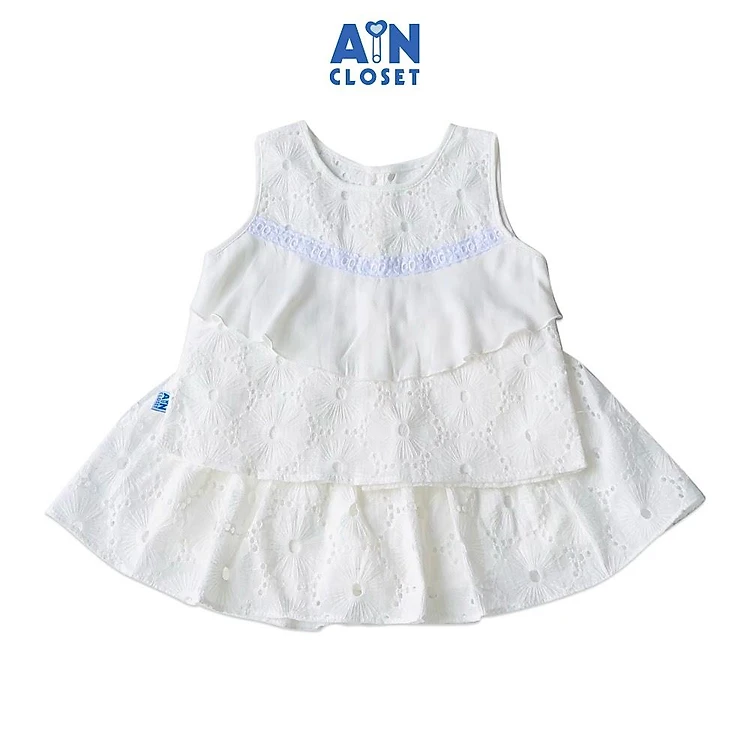 Bộ áo váy bé gái họa tiết Hoa trắng cotton boi thêu - AICDBGBHTOYU - AIN Closet