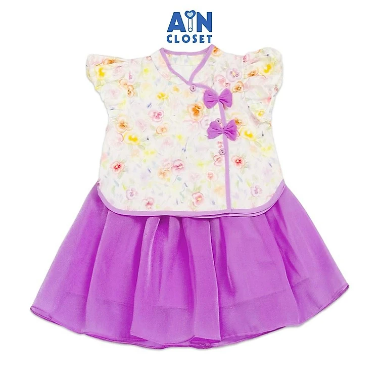 Bộ Áo váy Dân Quốc bé gái họa tiết Hoa Lan Tím - AICDBGAGLOEB - AIN Closet