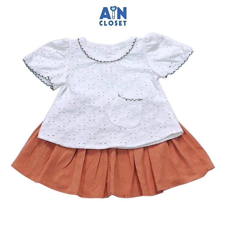 Bộ áo váy ngắn bé gái Áo trắng thun cotton thêu - váy cam - AICDBGIIOJKI - AIN Closet