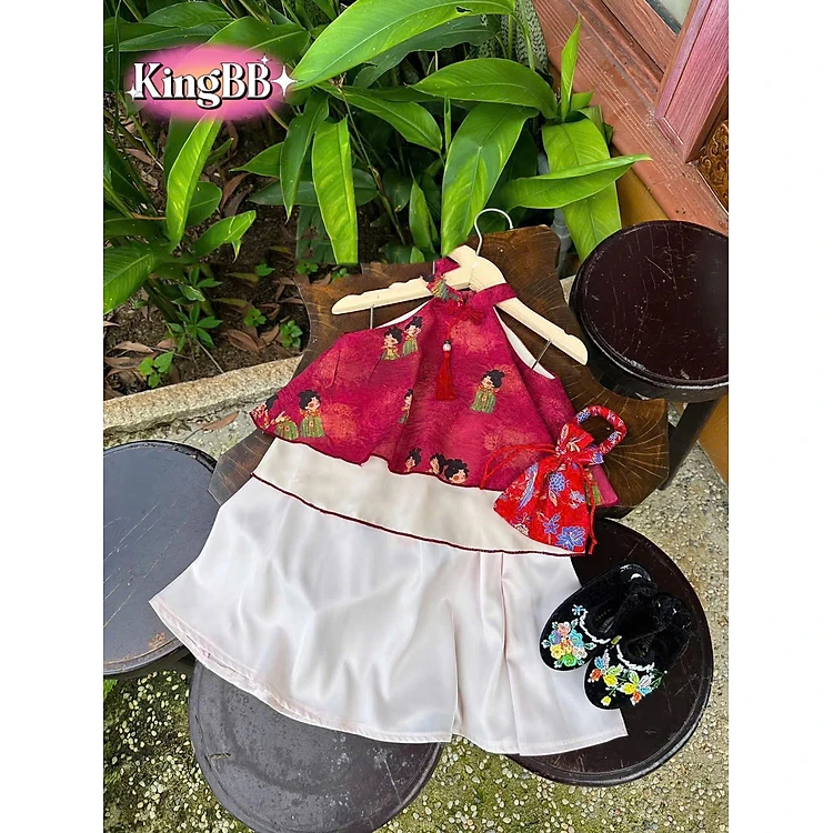 Bộ áo yếm phối chân váy cho bé gái xinh xắn diện lễ tết năm mới từ 12-50kg hàng thiết kế cao cấp