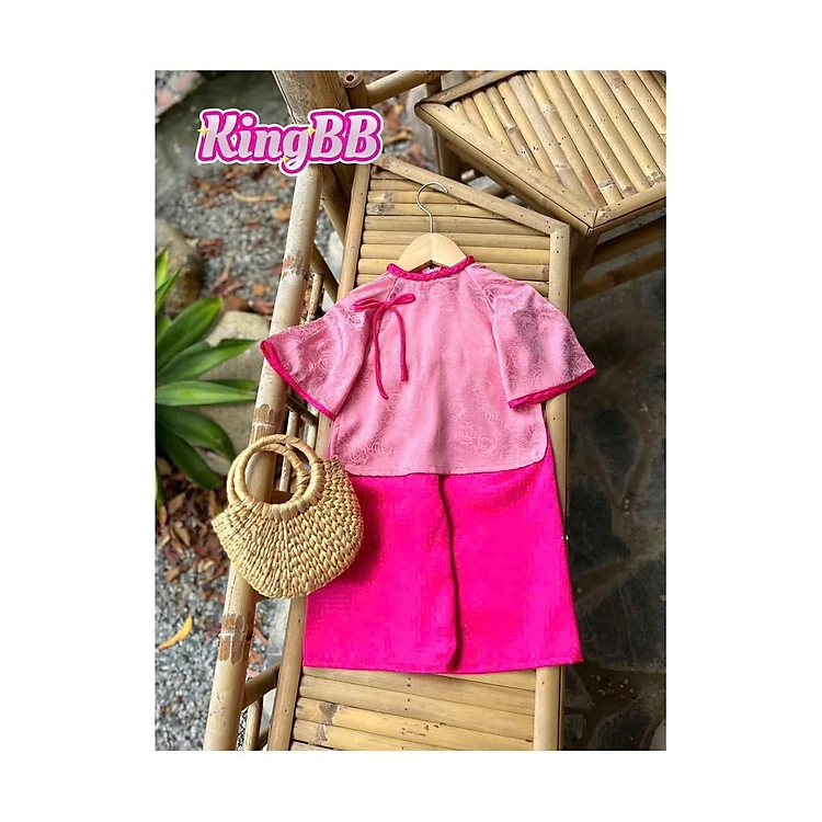 Bộ bà ba pháp phục cho bé gái đính nơ đi chơi biểu diễn đẹp từ 12-40kg chất lụa mềm mát