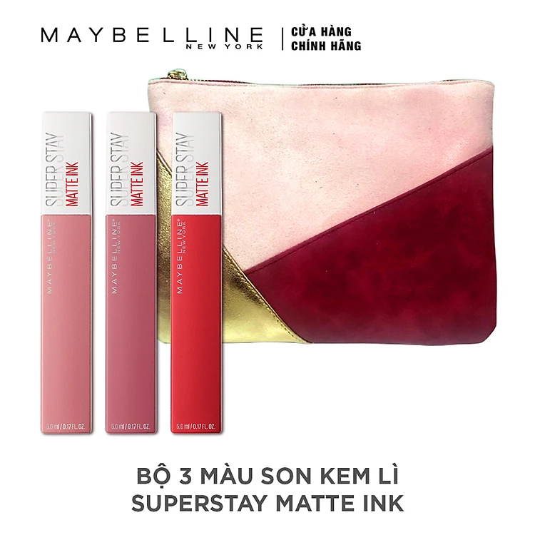 - Bộ Ba Son Kem Lì Super Stay Matte Ink Từ Maybelline New York lâu trôi 16 tiếng là sản phẩm cháy hàng tại nhiều quốc gia khác nhau, từ các quốc gia Châu Á như Philippines, Thái Lan… đến các nước châu Âu như Mỹ, Úc… với công nghệ mực đàn hồi độc quyền, không lem, không trôi suốt, giữ màu 16 tiếng, chất son kem lì vượt trội.