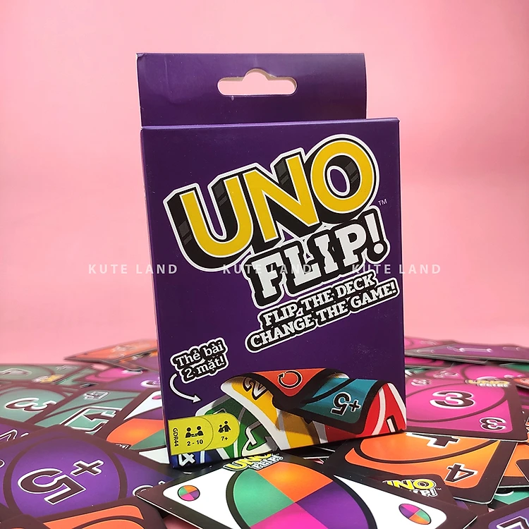 UNO Flip!!! Chính là phiên bản mới nhất, hot nhất, vui nhất của trò chơi kinh điển UNO. Với luật chơi tương đồng như Uno nhưng được bổ sung thêm rất nhiều chức năng mới, trong đó vui nhất chính là lá Flip. Mỗi lá bài trong bộ UNO Flip! này có 2 mặt khác biệt nhau, một mặt viền đen và 1 mặt viền trắng.