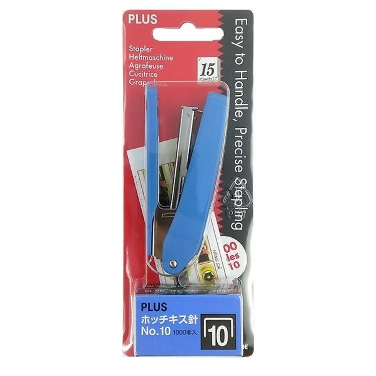 Bộ Bấm Kim Plus 30-012 TR OS 10E - Màu Xanh + 2 Hộp Kim No.10