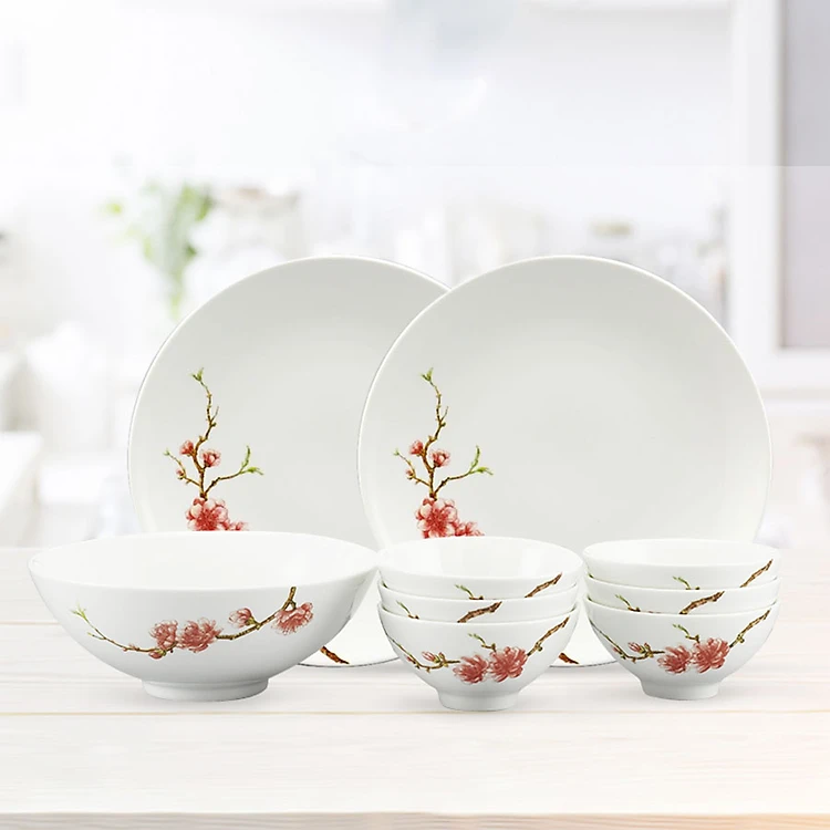 - Bộ gồm: 6 chén cơm 11.5cm, 1 dĩa tròn ảo 26cm, 1 dĩa tròn sâu 23cm, 1 tô trung 20cm.