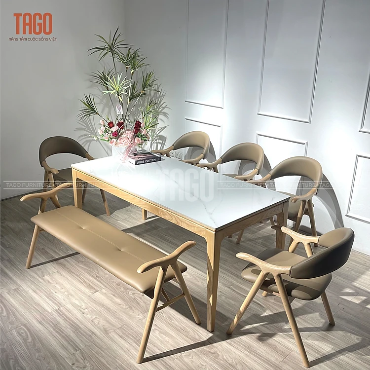 bộ bàn ăn 6 ghế mặt đá