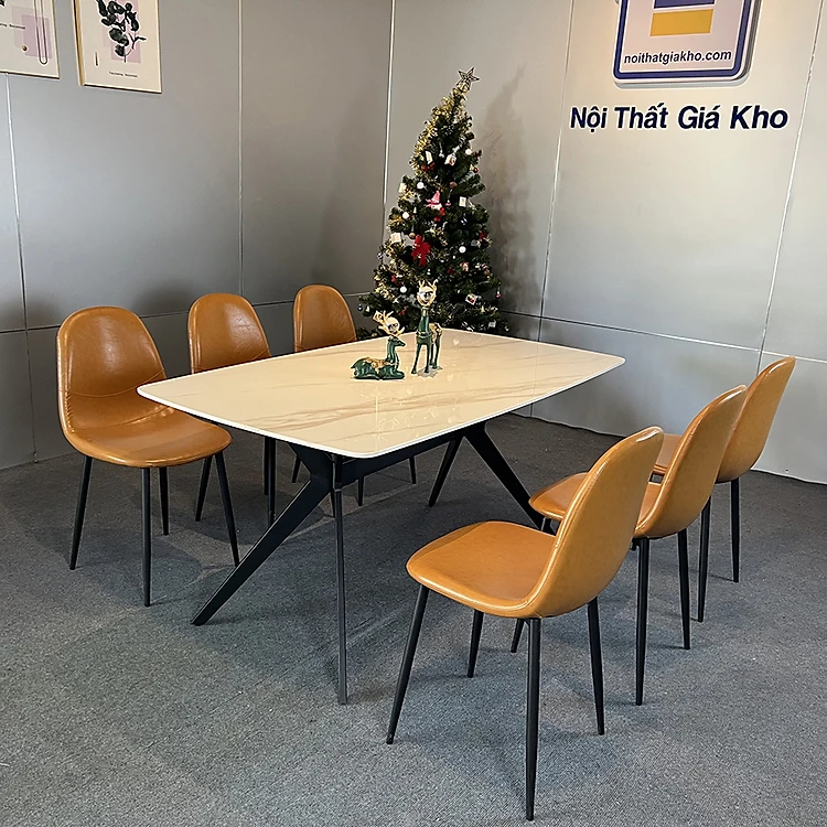 Bộ bàn ăn mặt đá Ceramic bóng chân chữ H kết hợp ghế Venus