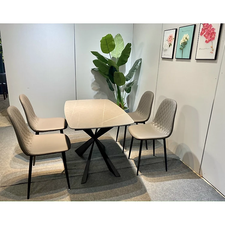 Bộ bàn ăn mặt đá phiến Ceramic kết hợp ghế Venus trám