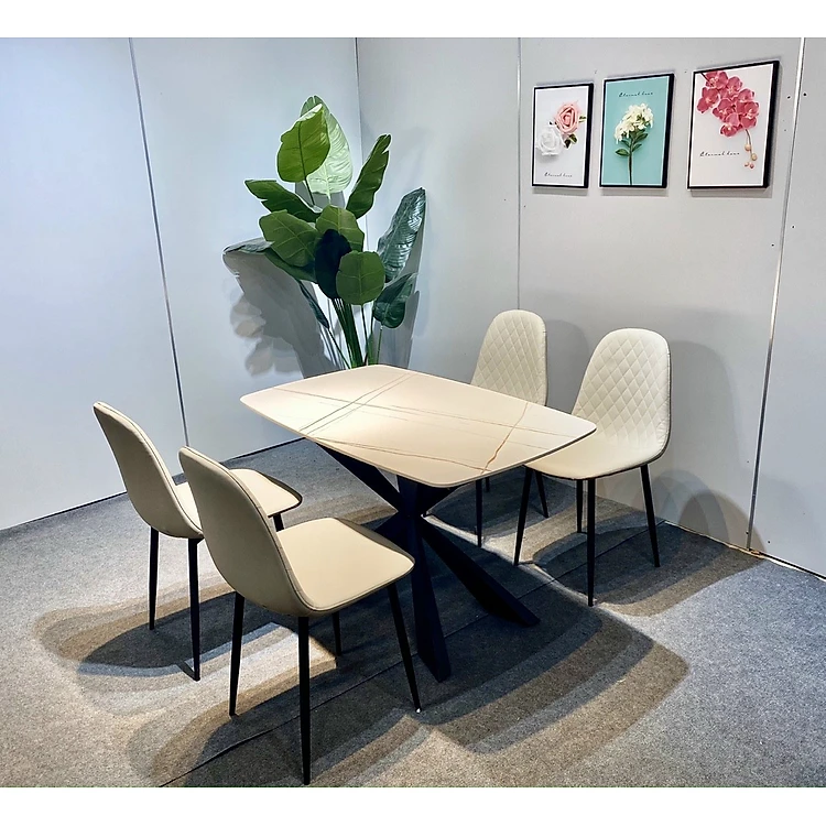 Bộ bàn ăn mặt đá phiến Ceramic kết hợp ghế Venus trám