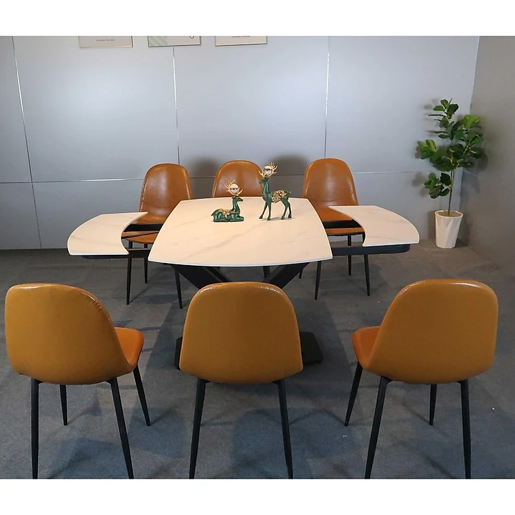 Bộ bàn ăn mặt đá phiến vân mây xoay thông minh kéo dài kết hợp ghế Venus