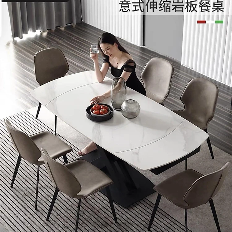 Bàn ăn mặt đá phiến xoay thông minh kéo dài kết hợp ghế Nordic