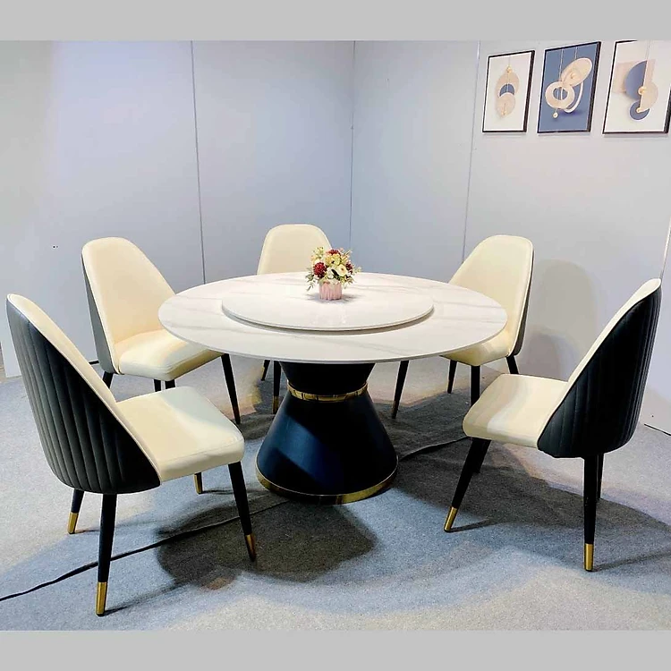 Bộ bàn ăn thông minh mặt đá phiến tròn mâm xoay kết hợp ghế Moca