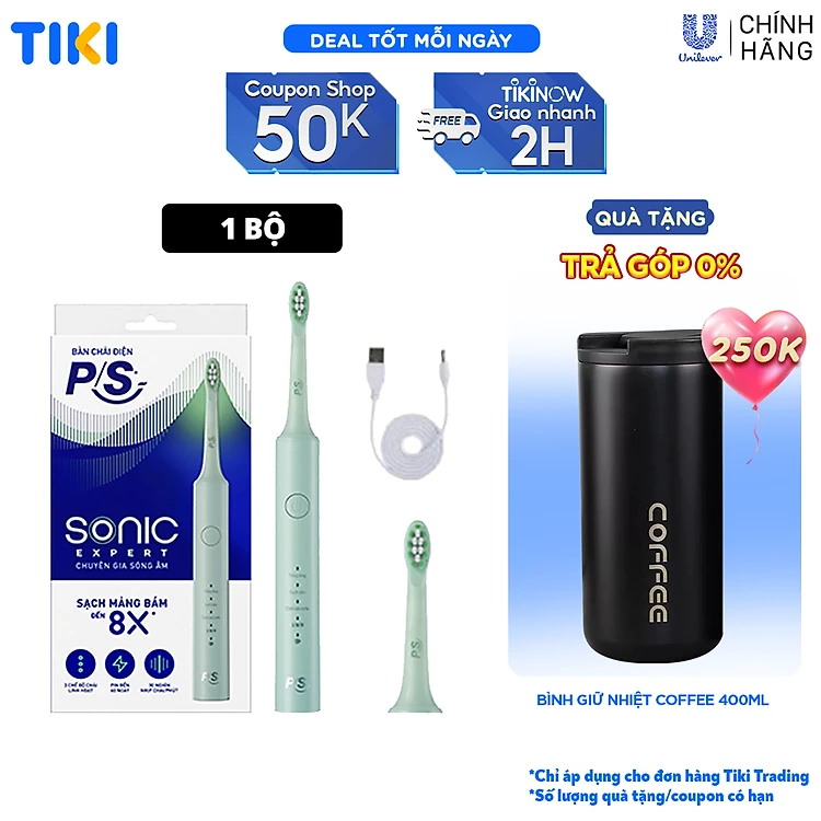 Bộ bàn Chải Điện P/S Sonic Expert Chuyên Gia Sóng Âm - Công Nghệ Sóng Âm, Chải Sạch Mảng Bám Tới 8X - Xanh Mint