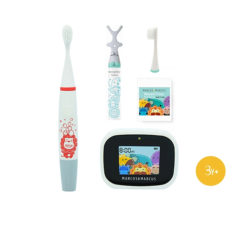Vệ sinh răng miệng không chỉ quan trọng mà còn rất thú vị! Bộ bàn chải tập đánh răng Premium Marcus & Marcus bao gồm bàn chải đánh răng chạy pin kèm một đầu bàn chải thay thế, bộ tương tác cảm biến quang tự động màn hình LCD và dụng cụ xỉa răng dùng chỉ nha khoa. Bộ tương tác LCD được cài đặt các đoạn phim hoạt hình vui nhộn có nhạc tương tác với bé khi đánh răng, hai phút chải răng sẽ bay vèo trong chớp mắt! Sợi chải nylon đặc biệt mềm mại và mặt chải lồi giúp vệ sinh răng sạch và mang lại sự thoải mái cho bé. Bàn chải răng chạy pin rung theo nhịp 30 giây để báo hiệu cho bé chuyển sang vị trí chải răng tiếp theo.