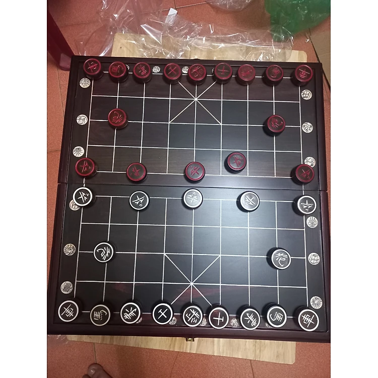 Bộ bàn cờ tướng gỗ trắc và quân gỗ trắc đỏ đen kt bàn 48×50×3cm ,kt mặt quân tiện gù 4cmdầy 2cm