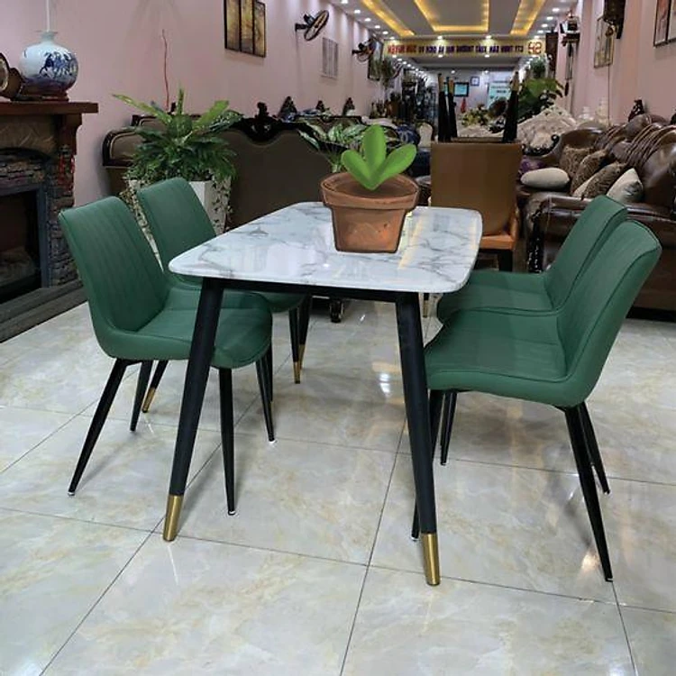 Bộ bàn ghế ăn mặt đá cẩm thạch nhân tạo 4 ghế Loft