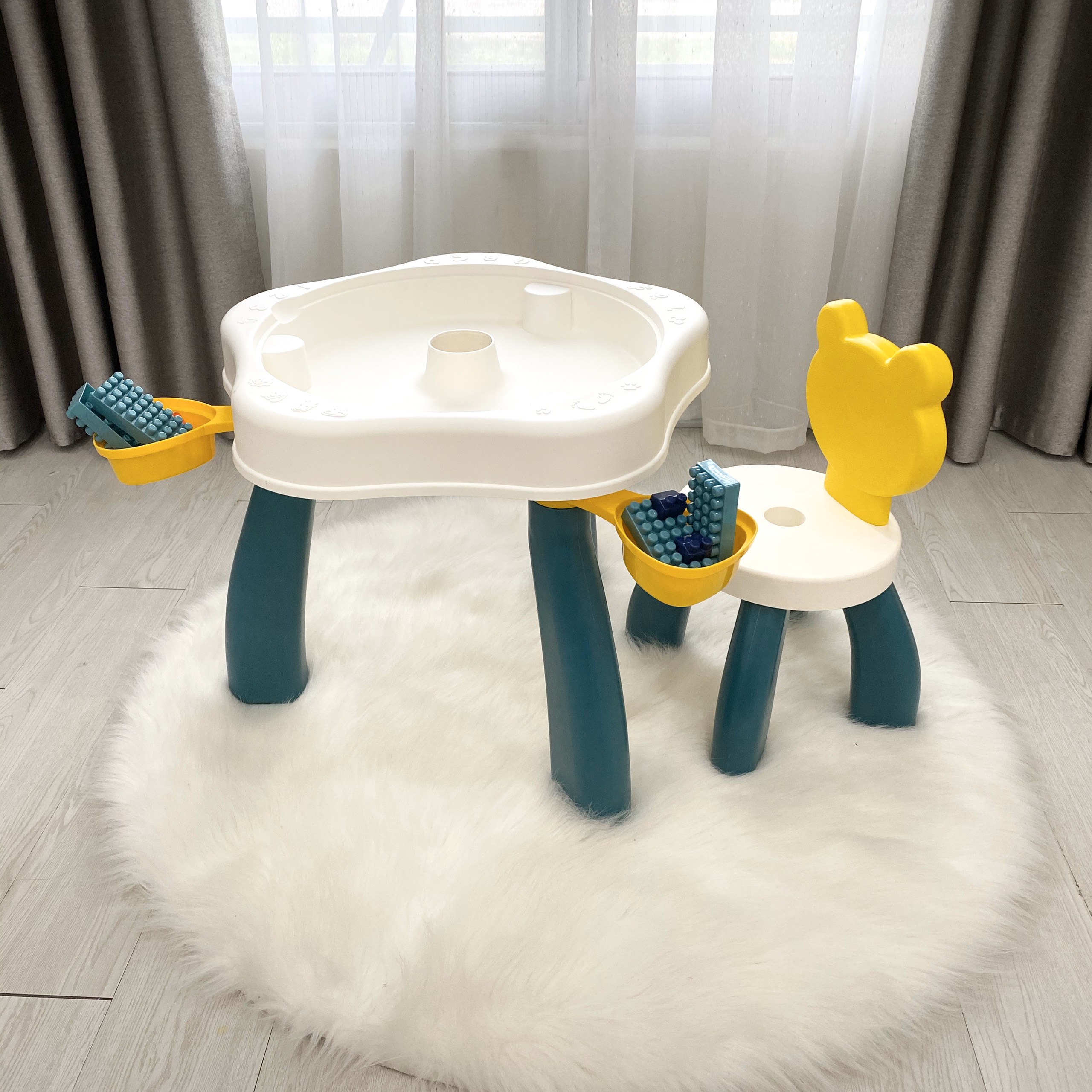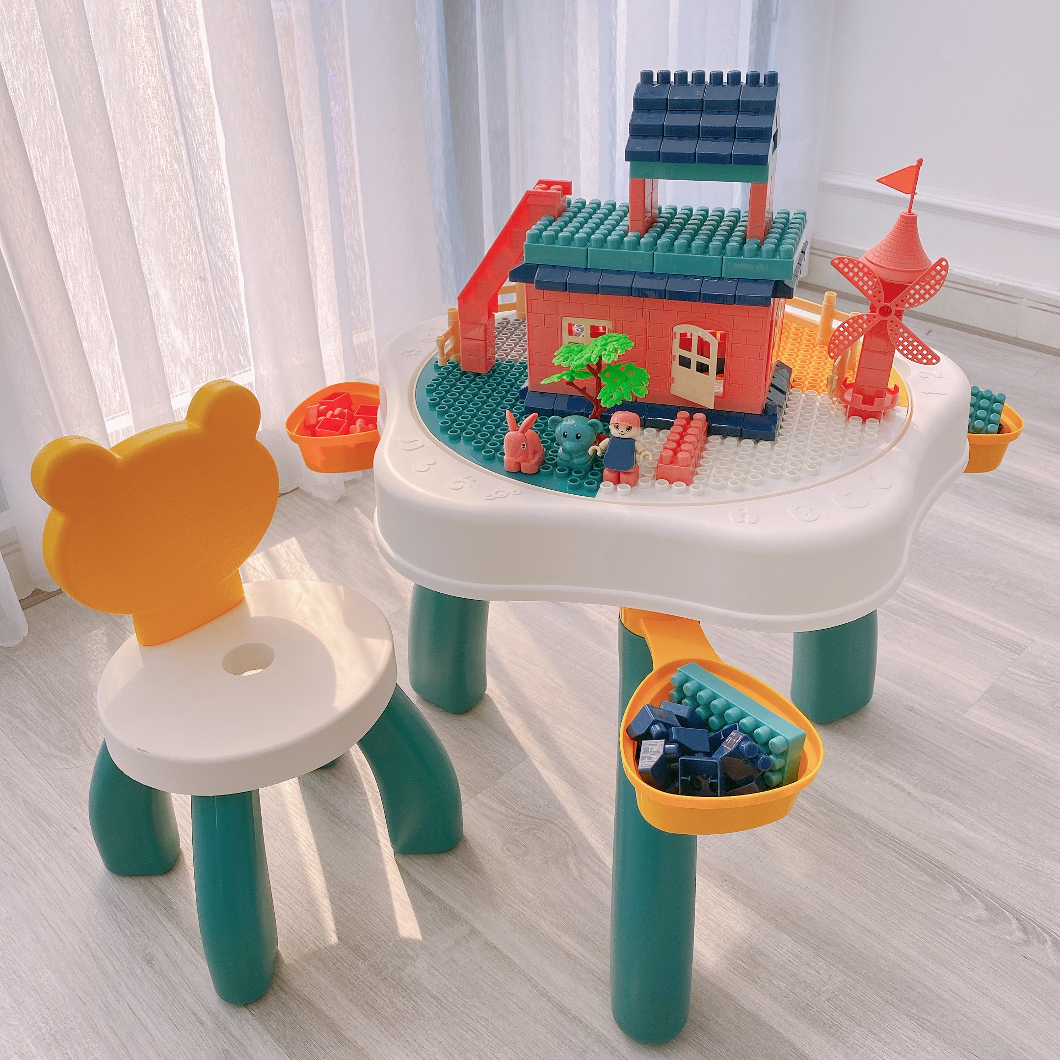 Bộ bàn ghế đa năng xếp hình lego hình gấu cao cấp Umoo