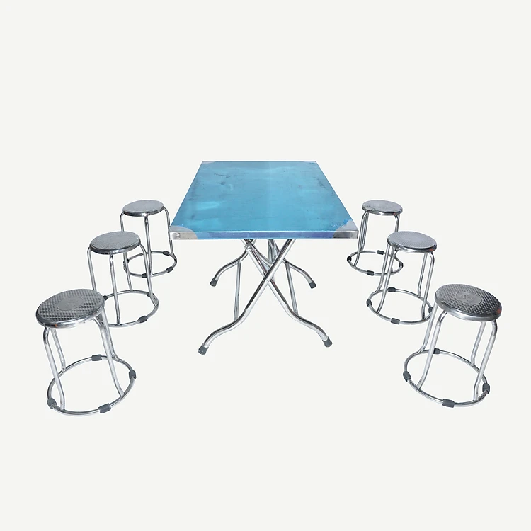 Bàn ghế inox liền chân được sản xuất thủ công bởi thợ lành nghề với nhiều năm kinh nghiệm kết hợp máy móc hiện đại, tạo nên sản phẩm được đảm bảo với tiêu chí độ chính xác cao và chất lượng tốt nhất. Mặt bàn được làm từ inox nhập khẩu POSCO Hàn Quốc với khả năng chống xước và chống lóa. Cạnh mặt bàn được ốp tăng cứng chắc chắn, đố sau mặt chữ U hoặc hộp vuông inox SUS201. Chân bàn inox được dùng ống Ø25 hoặc Ø 32 của inox tập đoàn Tiến Đạt, mối hàn kéo dài chắc chắn. Với ưu điểm gấp gọn nhẹ bộ bàn ghế inox quán ăn liền chân đang là lựa chọn của rất nhiều nhà rạp, nhà hàng, quán ăn trên cả nước.