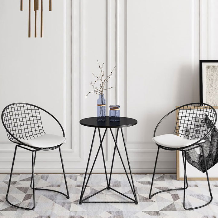 Bộ bàn ghế ban công, bàn ghế ngoài trời bằng kim loại bền chắc, chịu lực tốt. Kiểu dáng thiết kế sang trọng, thanh lịch, tiết kiệm diện tích. Dễ dàng di chuyển và lau chùi.