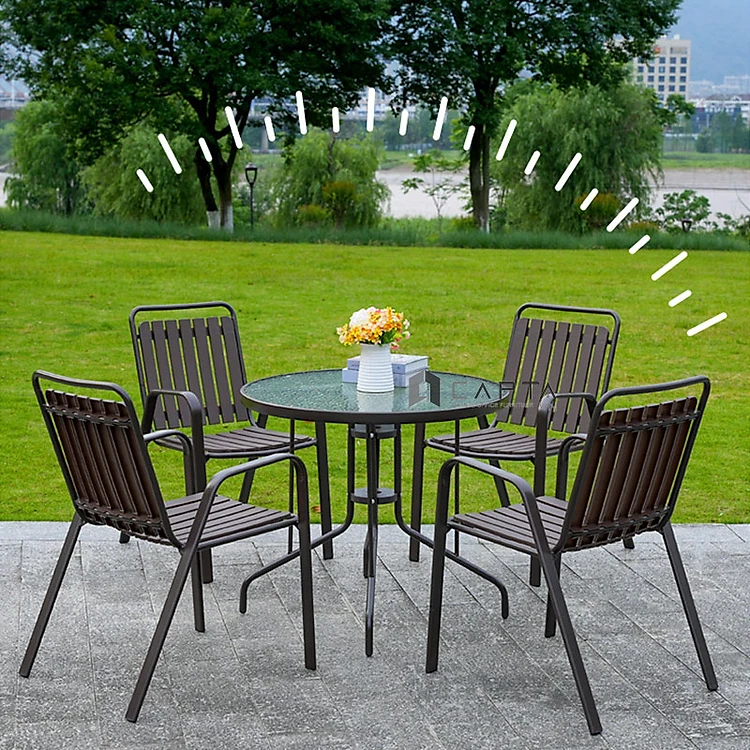 Bộ bàn ghế sân vườn mặt kính 4 ghế TE2020-08G/CC2032-T Nội thất Capta