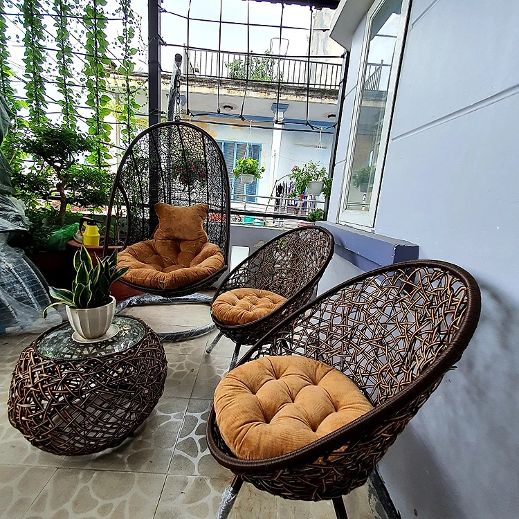Bộ bàn ghế sân vườn + xích đu NAVICOM - Nệm vải nhung vàng bò