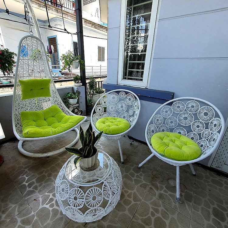 Bộ bàn ghế sân vườn + xích đu NAVICOM - Nệm vải nhung xanh cốm