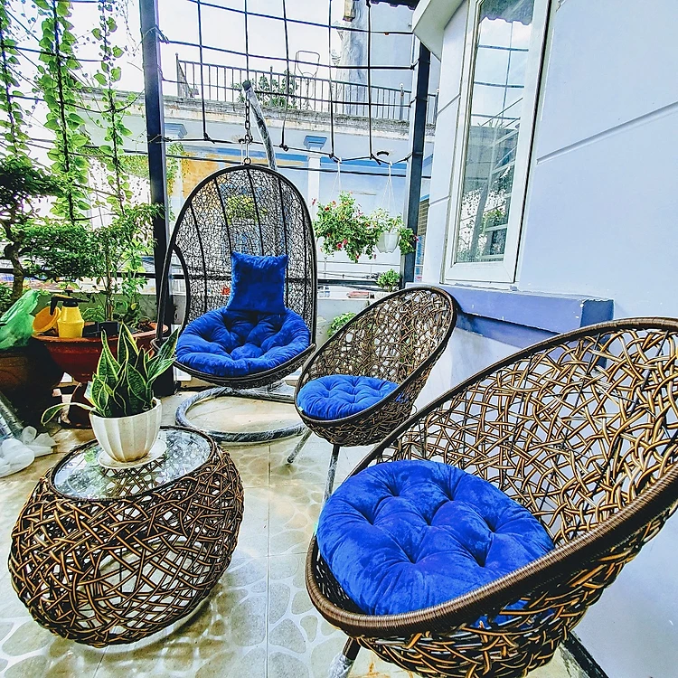 Bộ bàn ghế sân vườn + xích đu NAVICOM - Nệm vải nhung xanh dương