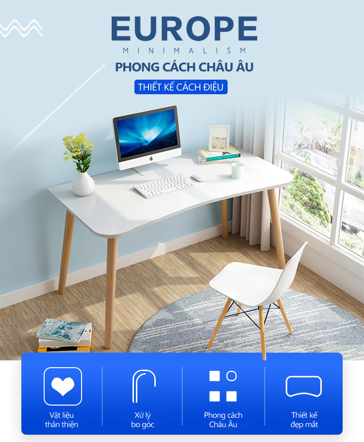 - Bộ bàn ghế vi tính phong cách hiện đại EUR-5210 với phong cách hiện đại, đơn giản, chất liệu gỗ MDF cao cấp được thiết kế sản xuất theo quy trình công nghệ Châu Âu chống cong vênh, mối mọt, ẩm mốc, phù hợp với khí hậu Việt Nam.