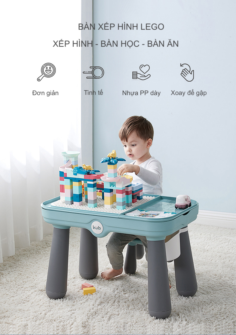 Bộ Bàn Ghế Xếp Hình Lego Đa Năng Cho Bé - Bàn Học, Bàn Chơi, Bàn Ăn, Thiết Kế Châu Âu, Có Giỏ Đựng Đồ Chơi