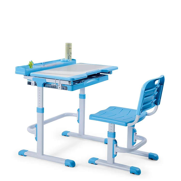 - Bàn có màu xanh da trời đẹp mắt, trẻ sẽ có thêm hứng thú khi ngồi vào bàn học.