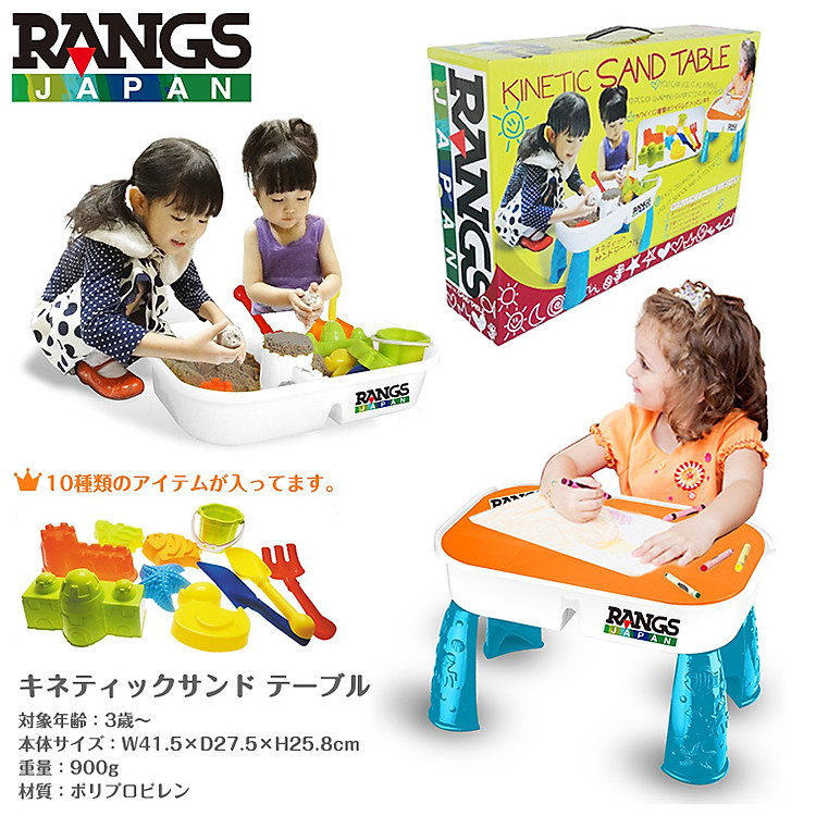 - Bàn chơi cát Kinetic chia làm 2 ngăn thích hợp chứa 2 màu cát khác nhau đi kèm với bộ 10 khuôn bằng nhựa bé có thể tạo ra vương quốc của riêng mình hay tạo ra hình ảnh chú vịt nhỏ dễ thương, những tòa lâu đài với nhiều màu sắc đa dạng, phong phú.