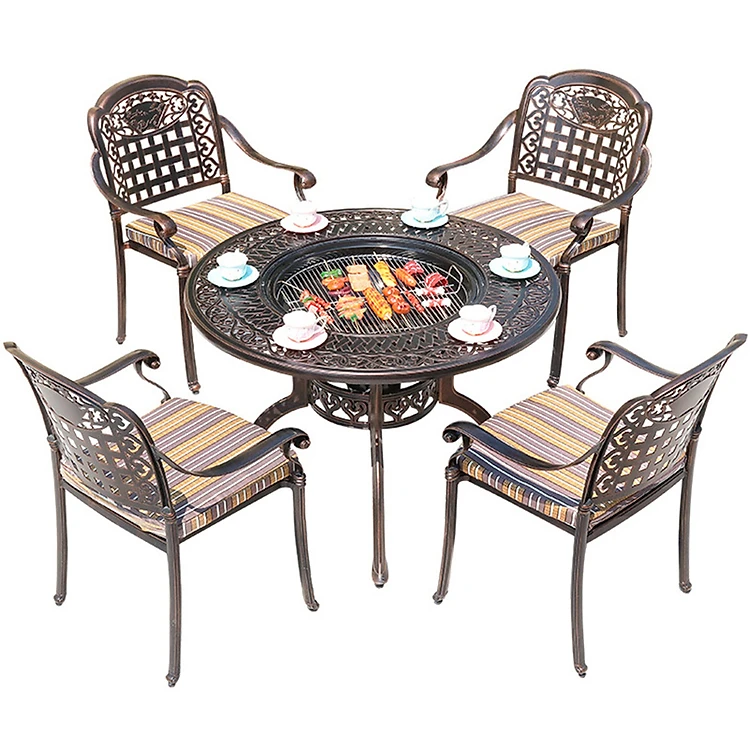 Bộ bàn nướng BBQ ngoài trời 4 ghế Bộ bàn tròn nhôm đúc 1m có bếp than tiện lợi SL TE2011-106A / CC2016-A – Nội thất CAPTA